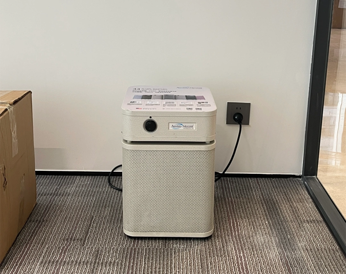 深圳南山某科技公司最近新遷辦公室,新裝修環(huán)境下難免會(huì)有味道,公司很人性化,在裝修完成就添置了幾臺(tái)奧司汀空氣凈化器來除甲醛異味,讓員工有一個(gè)安全健康的工作環(huán)境,再也不用擔(dān)心甲醛、霉味、細(xì)菌和病毒啦!